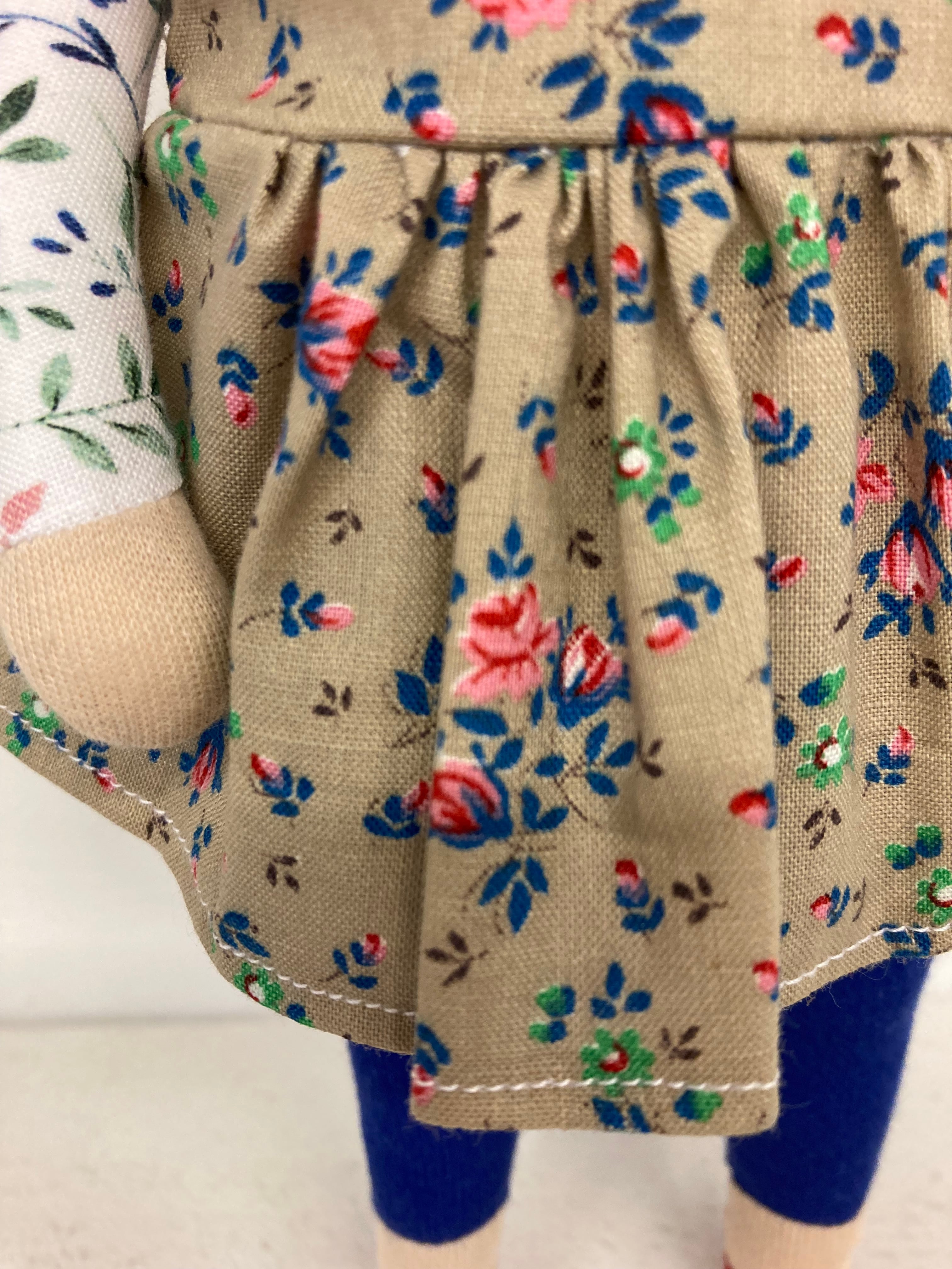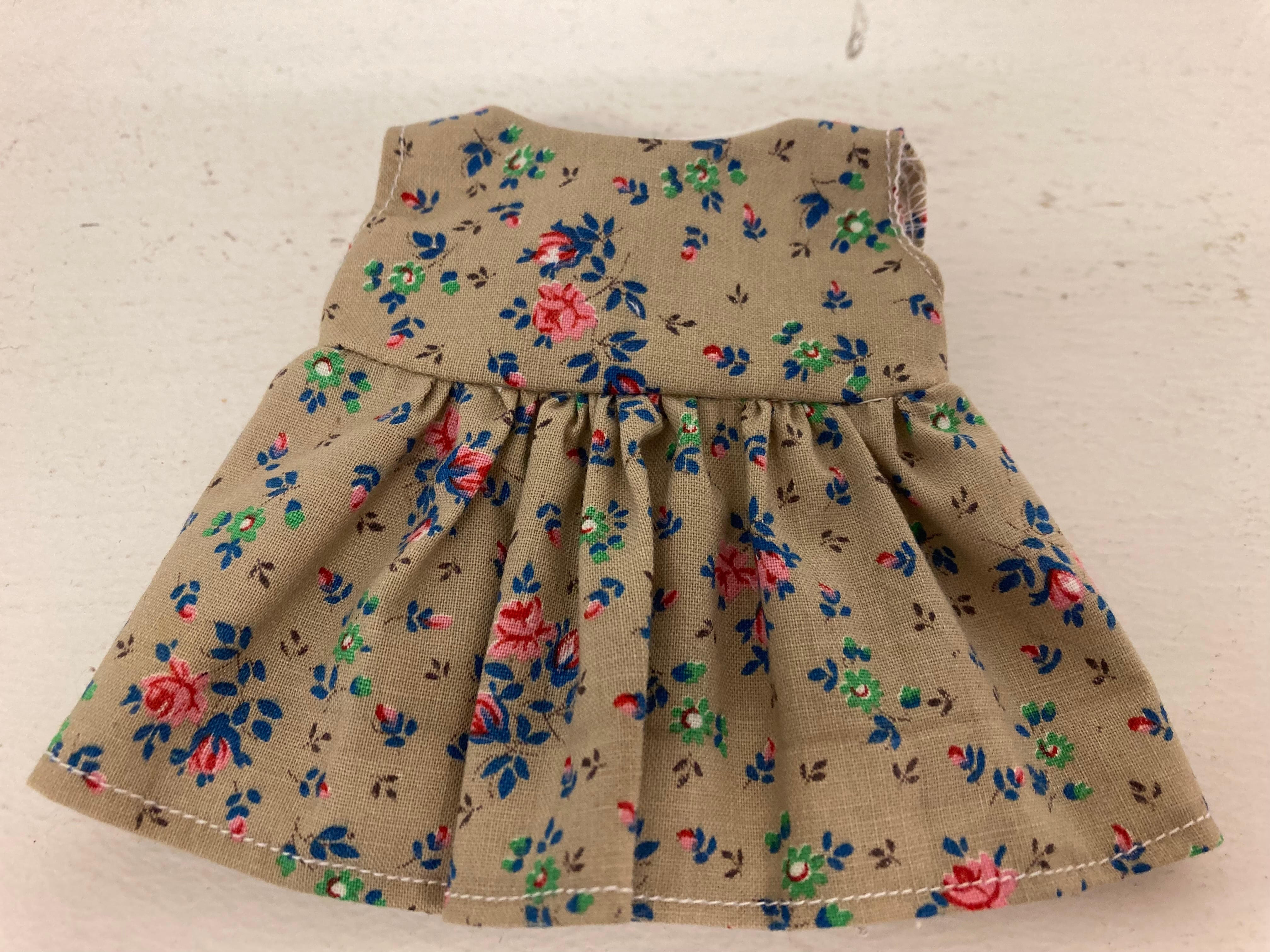 sokko's Dress 紺色デニム生地にピンクと水色柄