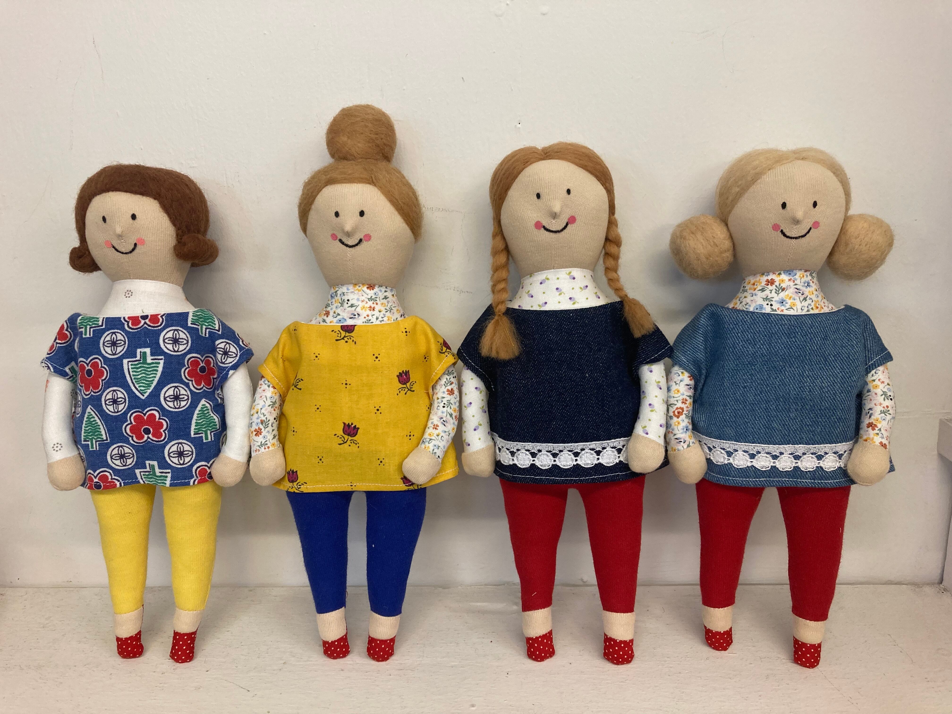 素材:コットンや麻の生地・アクリルわた・羊毛フェルト・アクリル絵の具