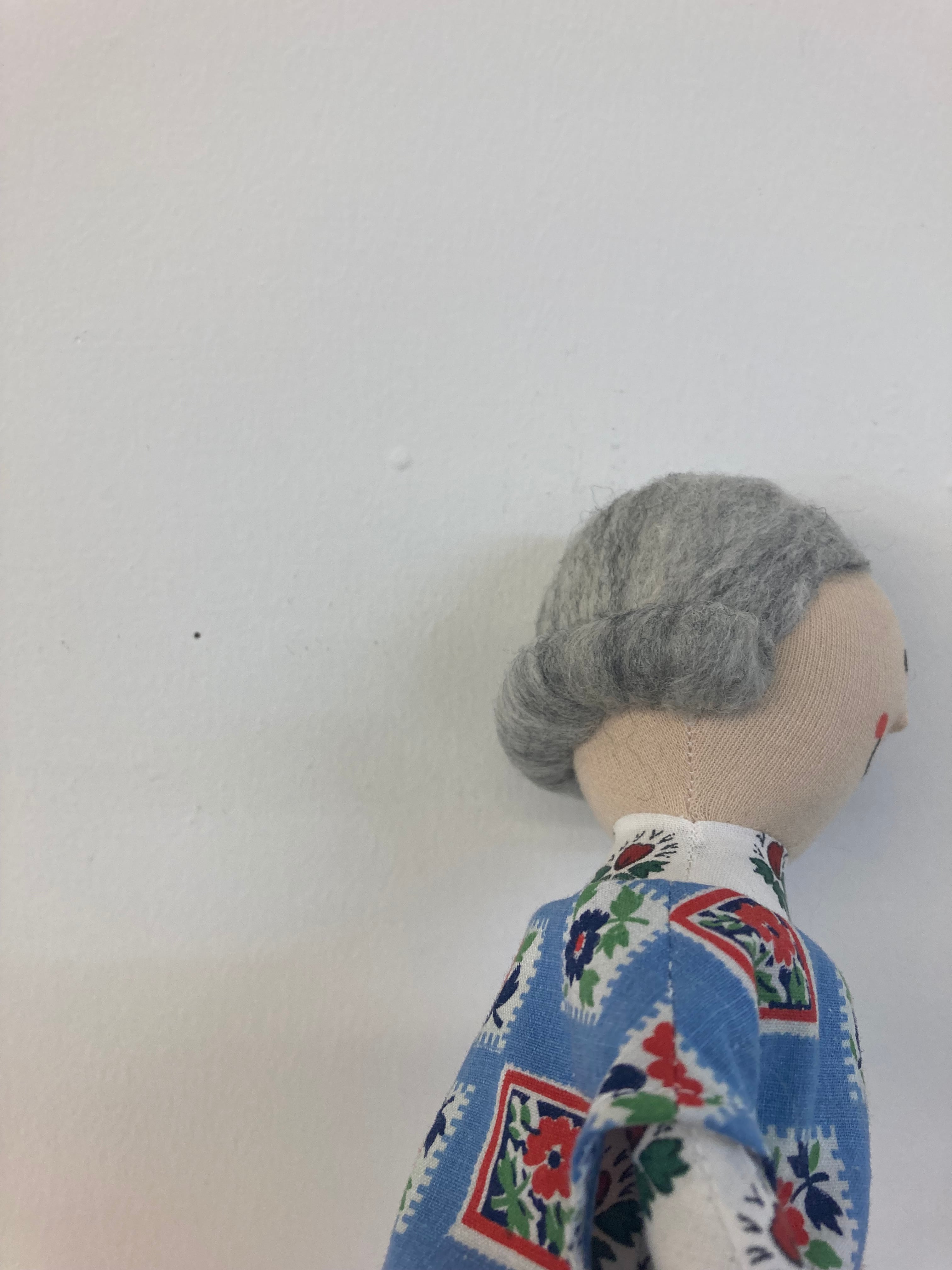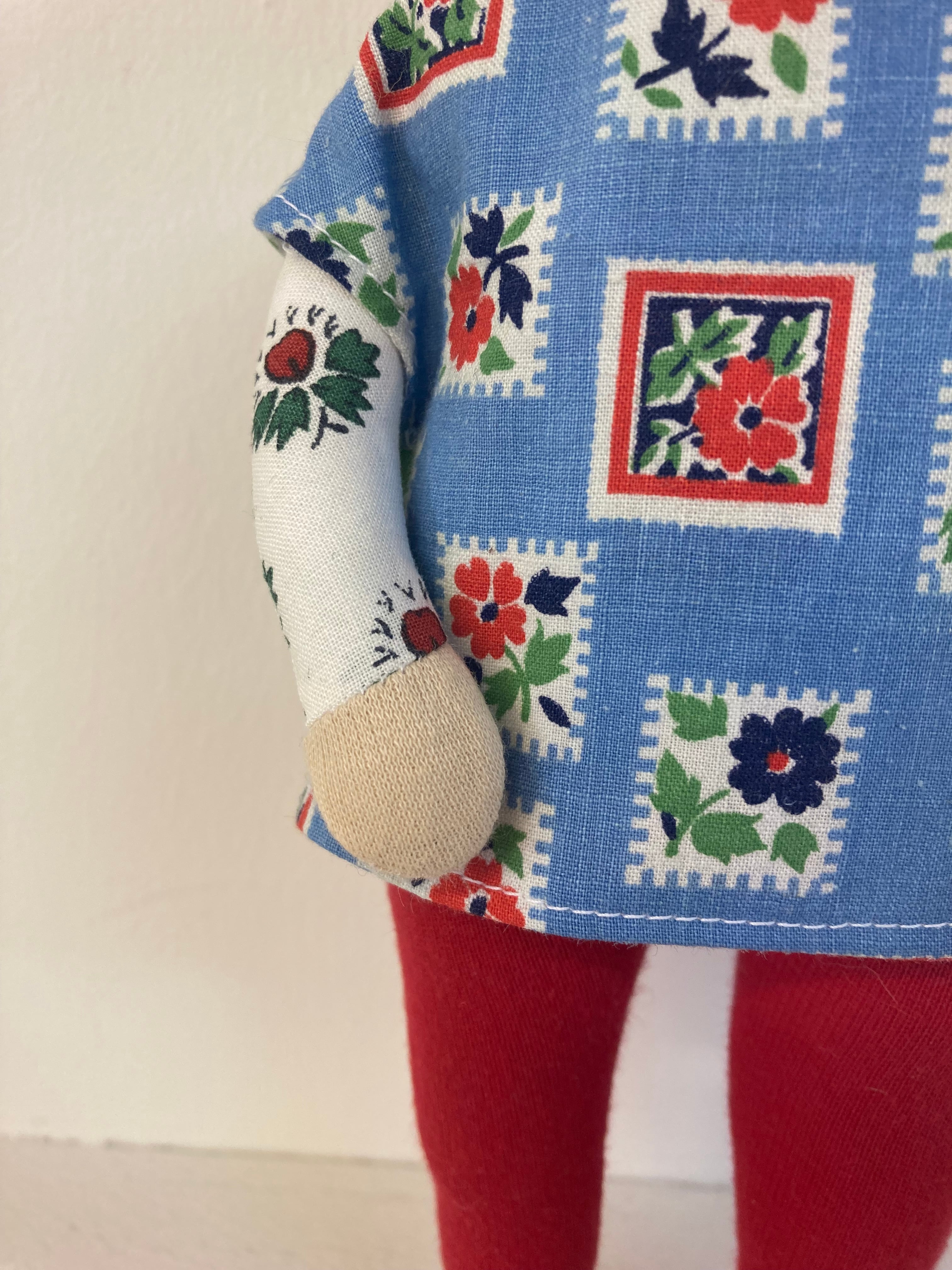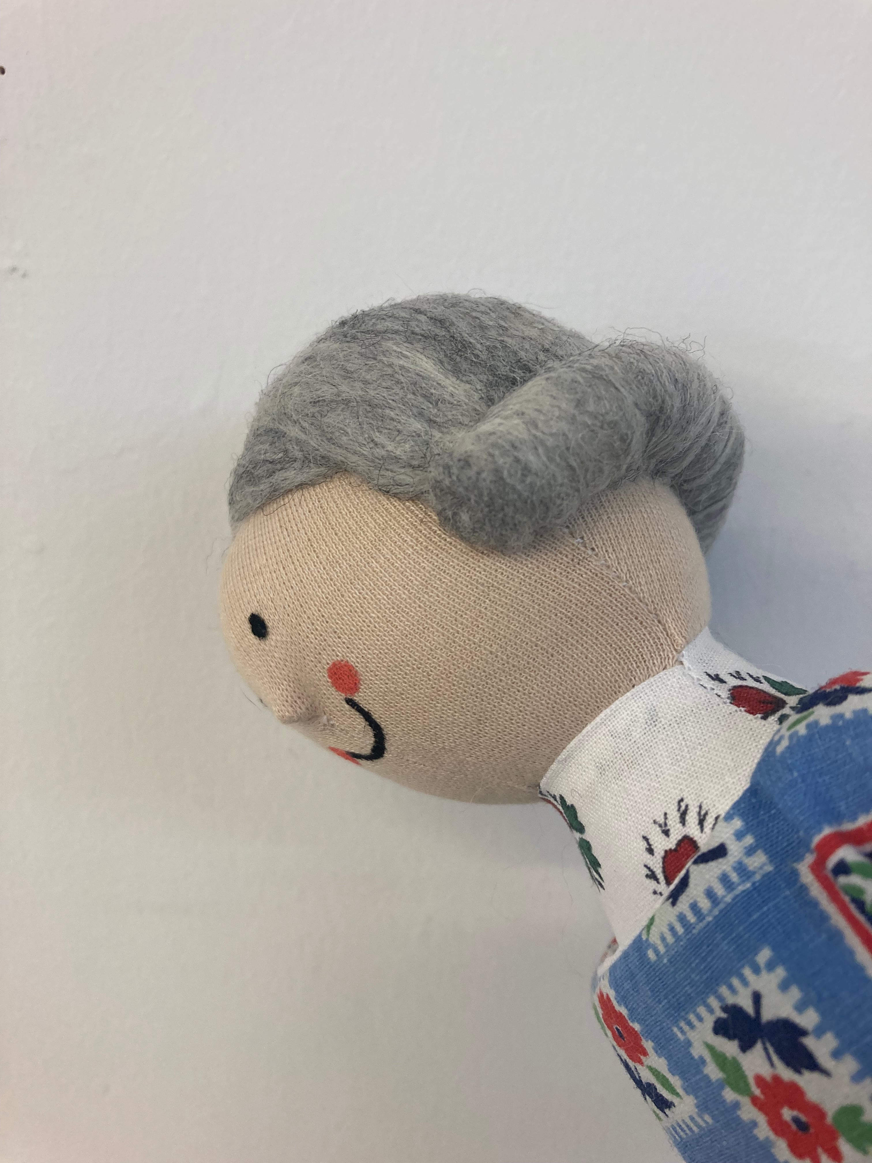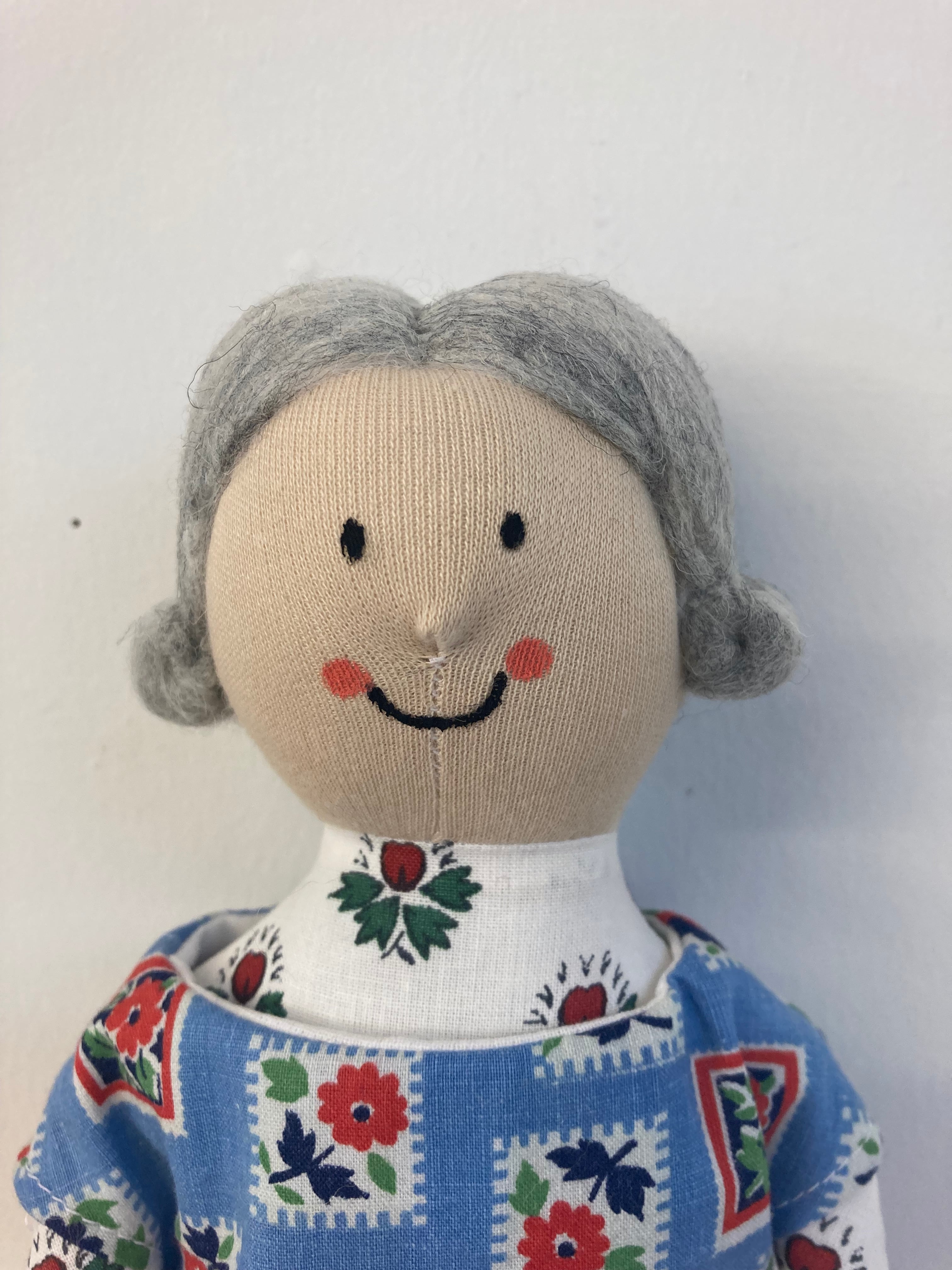 sokkoちゃん(ソッコちゃん) 立ち姿 素材:コットンや麻の生地・アクリルわた・羊毛フェルト・アクリル絵の具 身長:髪型も含めて27cmほど 肌の色:ベージュ色 髪の色:灰色 チュニックのみ着せ替えができます。 自立して立つ事は出来ませんので、本棚や壁などにに立てかけて飾って下さい。 お洋服にアメリカやヨーロッパのヴィンテージ布を使用しています。 着せ替え用のドレスは付属しません。