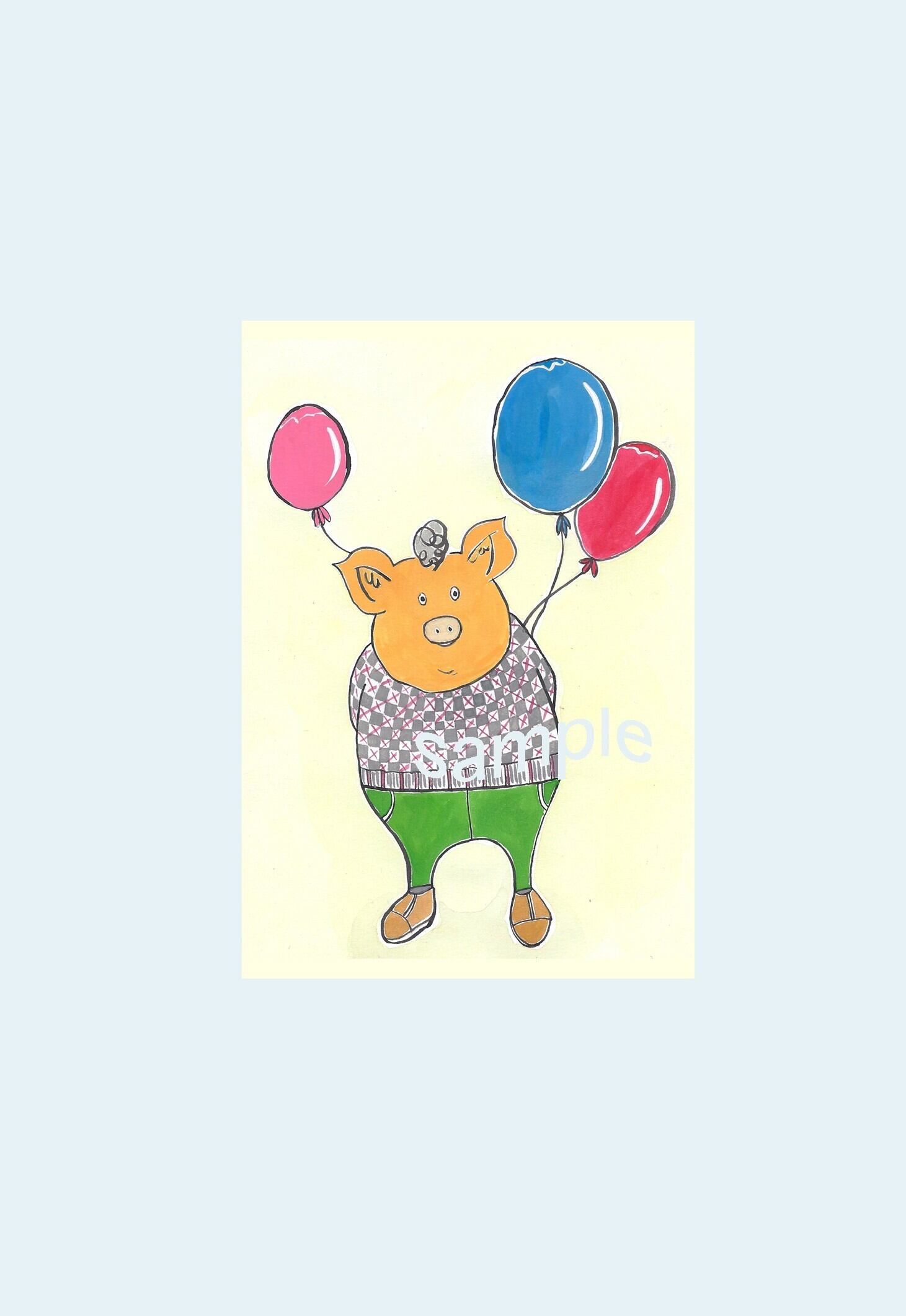 ポストカード 013番 「ブタくんと風船」